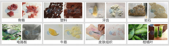 在常溫下難以研磨塑料、樹脂、紡織品和多聚物,在超低溫下則變得非常容易。同時可以避免研磨過程中摩擦引起溫度升高對樣品的分子結構和組成信息的影響。